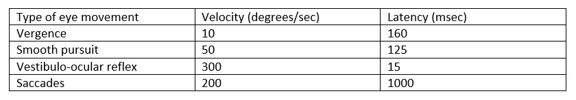 velocities of the various eye movements. From this table, you can see
